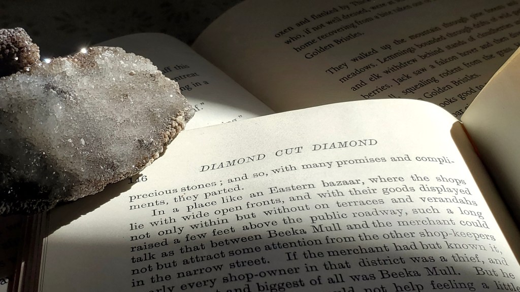 Tell me, do you read used books? Does your book collection contain a patchwork of miss-matched series, or numerous, old, mass market editions? Mine does. My shelves are filled with books that are out of print, worn and torn with yellowed pages, stains and spills. Odd copies that contain hand-written dates, love dedications, and even an occasional scribble or two in the margins. Used books, to me, are like finding a buried treasure– a diamond in the rough. Finding that treasure requires nothing more than a bit of patience as you comb through miles of shelving, and a keen eye.