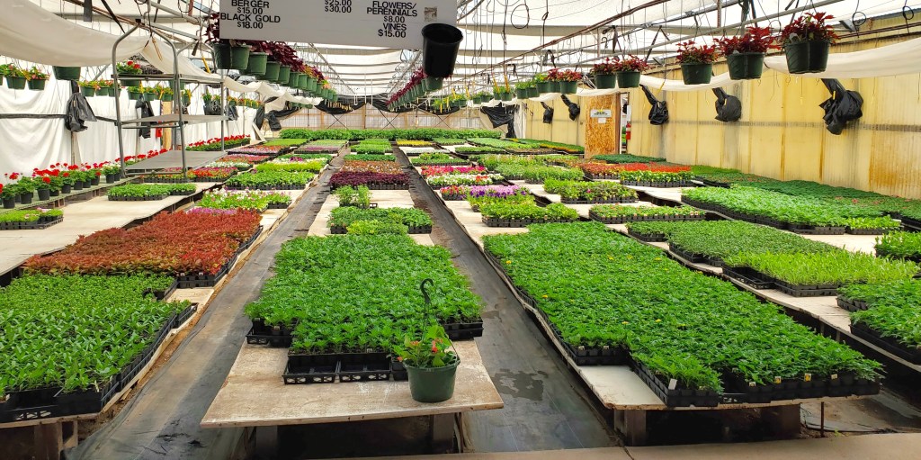 Spring is a very full time of year for me, because that is when the greenhouse I work for opens up to the public. Most of the year we all work quietly behind the scenes, carefully planning and preparing flowers, and vegetable plants for the growing season. But all of that changes when opening day arrives, and my job shifts from planting, to working retail— an entirely different ballgame. Instead of plants flying from my hands, it’s now numbers, and totals, and answering all kinds of questions from customers. I’m really grateful for my job and I have been there for many years. My days are filled with very hard work, beautiful flowers and much sunshine, and I wouldn’t have it any other way.