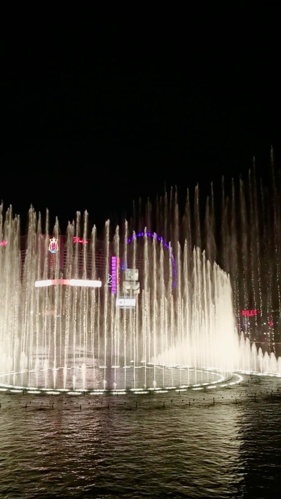 It was incredible. Wherever you looked, there were traces of BTS, and ARMY was everywhere. (BTS fans go by the name, “ARMY”.) Almost every building had a purple sign proclaiming Borahaegas. (Borahaegas is a play on the word borahae–a term BTS invented that means, “I purple you”. A mix of the Korean word for purple [bora] and the phrase “I love you” [saranghae].) The famed Bellagio fountains even had a special water show just for BTS fans. And nearly everyone on the streets was there for BTS. It was extraordinary to see so many people who had the same plan as me–who jumped through all the same hurdles to be there, in the same city, at that exact moment. But all of that was just a teaser, a small taste before the real thing– the concert.